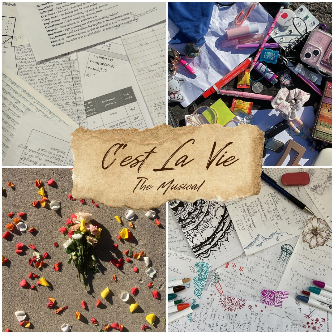 C’est La Vie is a musical centered around the lives of four teenage girls. Each has a set of problems that they are struggling to deal with from absent parents to blackmail to impossible expectations of success. The four girls are thrown together for a school project and do not initially hit it off. They face many trials as they attempt to work together, but eventually learn to trust and confide in each other. Throughout the events of the show, they learn that even when their lives are falling apart, having someone beside them, even if they cannot solve anything, makes life more enjoyable.